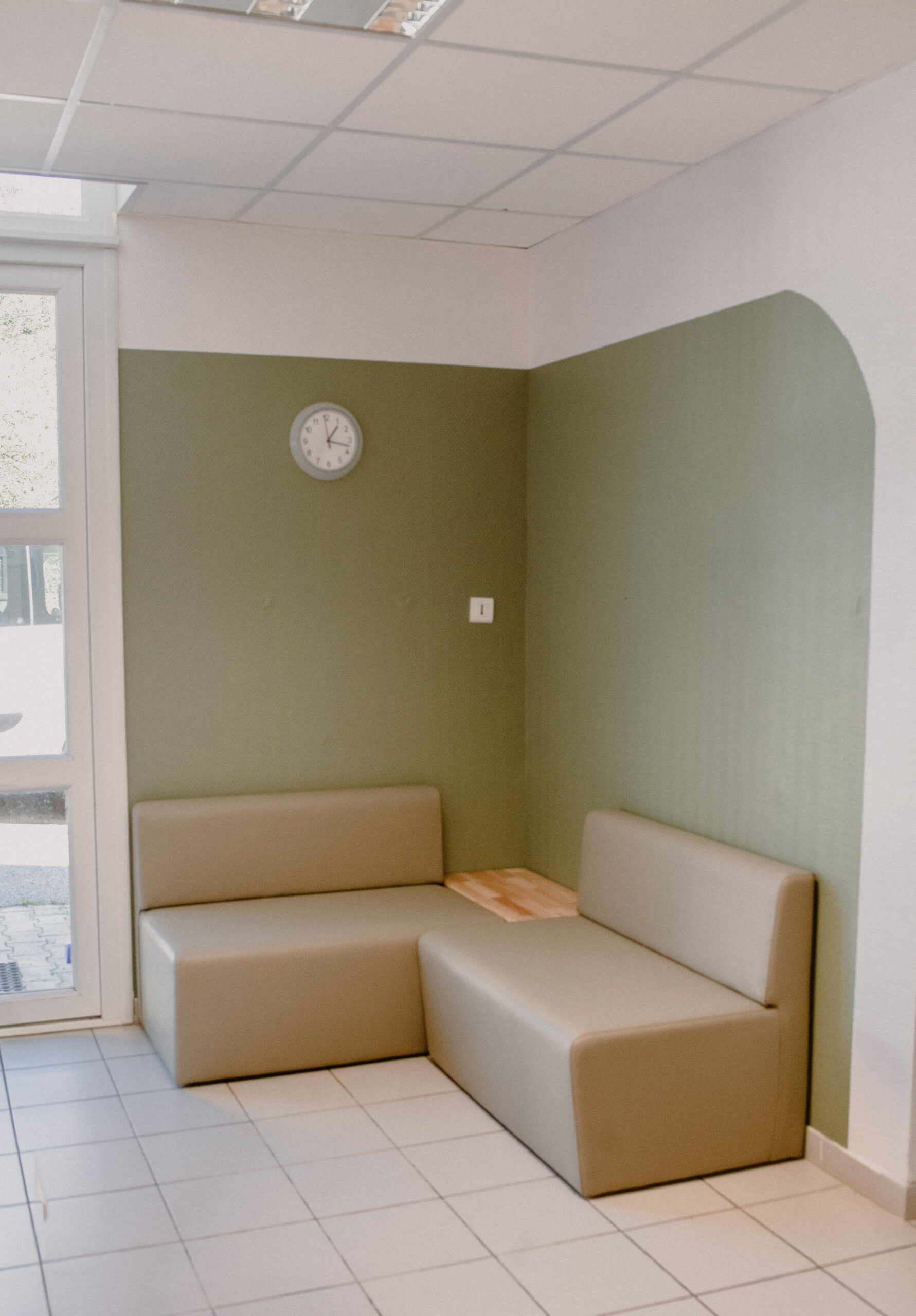 Un coin banquette a été créé pour diversifier les usages et offrir un espace plus libre pour lire, discuter ou attendre.